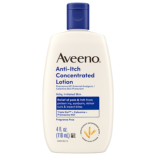 Aveeno Anti-Itch Concentrated Lotion with Calamine is a skin protectant that helps soothe itch caused by poison ivy/oak/sumac, insect bites, and chicken pox rash. This soothing lotion provides fast-acting, soothing relief of rashes and itching. It's formulated with calamine to dry up weepy rashes, as well as triple oat complex, which soothes itchy, dry skin.
