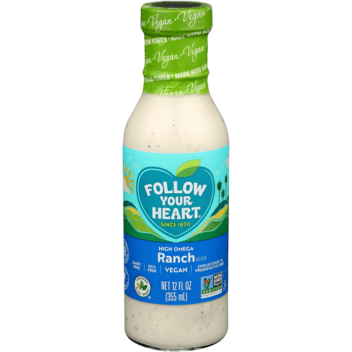 Follow Your Heart Creamy Vegan Ranch Dressing with Avocado Oil, Non-GMO, Dairy Free, Gluten Free, Creamy Salad Dressing with the Benefits of Hemp and Flaxseed Oils, 12 OZ Bottle