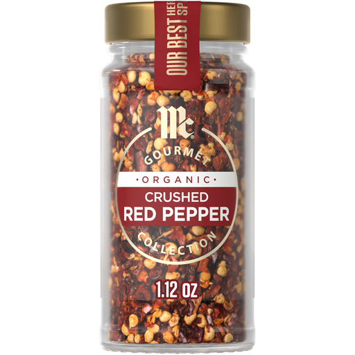 McCormick Gourmet Collection Organic Crushed Red Pepper is carefully sourced and flavor sealed for the most robust flavor possible. Elevate your cooking with bold heat, a sharp peppery bite, and intriguing texture. Just a dash will make your favorite dishes pop — think chili, stir-fries, pizza, pasta, and salad.