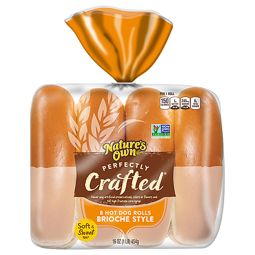 Nature's Own Perfectly Crafted® Brioche Style Hot Dog Rolls set the bar high for your next barbecue with their soft texture and subtle sweetness. With eight fluffy and delicious brioche style hot dog buns, you can add a gourmet touch to picnics, camping or family gatherings. Load them up with your favorite frank and toppings or make a delicious bratwurst with spicy mustard. Nature's Own Perfectly Crafted soft hot dog buns have no artificial preservatives, colors or flavors, and no high-fructose corn syrup. Plus, you can trust that all Perfectly Crafted products from Nature's Own are Non-GMO Project Verified. You'll feel confident serving family and friends delicious choices from Nature's Own bread, America's #1 selling loaf bread brand.*