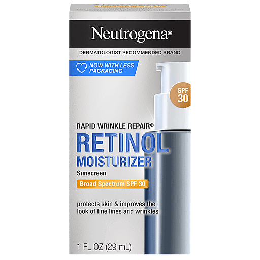 Help hydrate & protect skin while reducing the look of wrinkles with Neutrogena Rapid Wrinkle Repair Retinol Anti-Wrinkle Daily Moisturizer with Broad Spectrum SPF 30 Sunscreen. This fast-acting retinol face & neck cream visibly reduces the look of fine lines & wrinkles while protecting against sun damage. Great for a daily skincare routine, our anti-wrinkle formula has been dermatologist tested to smooth skin & improve skin clarity in one week & reduce the look of fine lines & dark spots in just four weeks. Formulated with retinol, a powerful dermatologist-proven form of vitamin A that fights fine lines, dullness, wrinkles & dark spots. Plus, hyaluronic acid, which adds plumping moisture to help hydrate & rejuvenate the look of skin. This Broad Spectrum SPF 30 skin protecting moisturizer is formulated without parabens, mineral oil & dyes & comes from the #1 retinol brand used most by dermatologists.