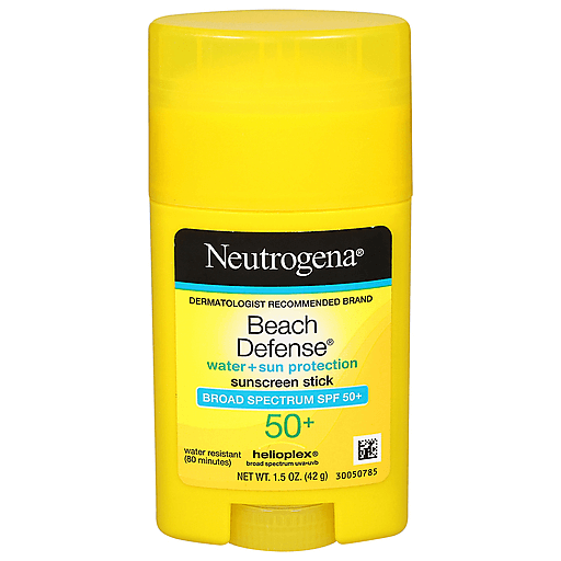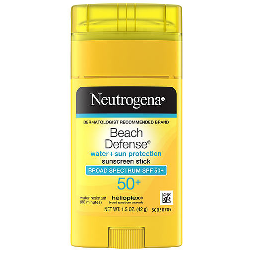Get ready for fun in the sun with Neutrogena Beach Defense Face & Body Sunscreen Stick with SPF 50+. This mini sunscreen travel size is perfect for easily reapplying throughout the day, ensuring continuous protection. Glides on easily for convenient, hands-free, no-mess application without the hassle of traditional lotions. The stick sunscreen for face & body has a smooth & clear application, leaving no residue behind. Face sunscreen stick with Helioplex Technology provides superior broad spectrum sun protection from aging UVA rays & burning UVB rays. Specially formulated to be lightweight, PABA-free & water-resistant for up to 80 minutes. Apply this Neutrogena sunscreen stick, from a dermatologist recommended sun care brand, prior to sun exposure to keep skin protected during family beach days. While "reef-safe" is not a standardized term and is defined differently by each manufacturer, our sunscreens are Hawaii Reef Act 104 compliant - Oxybenzone and Octinoxate free
