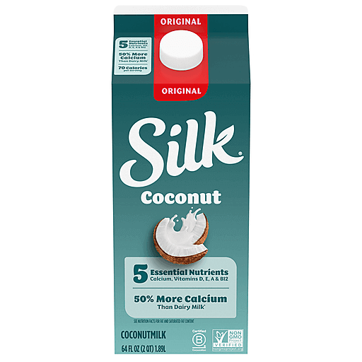 Treat yourself to the sweet and creamy Silk Original Coconutmilk — delicious in every dish and drink. Made with real coconuts grown well by Mother Nature, this plant-based coconutmilk is perfectly sweet, thick and creamy. Plus, its mild coconut flavor makes it an extraordinary tasting non dairy milk substitute that you can use throughout your day.So, make this coconutmilk part of your cooking or baking supplies and add some coconut deliciousness to your favorite sauces, sweets and smoothies. Every serving of this gluten free, lactose free, plant based milk has 50% more calcium than dairy milk*. Plus, Silk Coconutmilk is an excellent source of antioxidants, B12, Vitamin A and Vitamin E**. Silk Coconutmilk is totally free of dairy, soy, lactose, gluten, casein, egg, and MSG. Silk Coconutmilk is great for dialing up your favorite recipes. Whether you’re making a bowl of healthy cereal, drinking straight out of a glass or enjoying a frothy coffee, trust Silk — the Original Plant Pioneer. It’s not just coconutmilk, it’s Milk of the Land. Read more about our story on our packaging. Enjoy all of the Silk products, including vegan milk, non dairy creamer and dairy free yogurt varieties. *Silk Original Coconutmilk has 460mg calcium per cup, reduced fat dairy milk has 293mg calcium per cup. USDA, ARS. FoodData Central, 2022. **See nutrition facts for saturated fat content.
