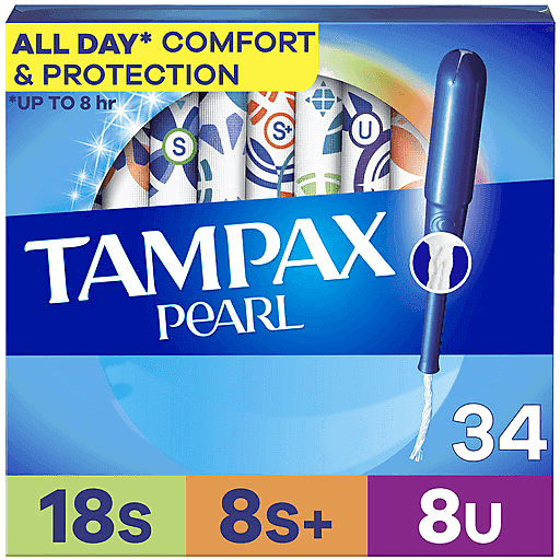 Say hello to up to 100% leak free periods with Tampax's Dual Protection System. Only Tampax has a LeakGuard braid that helps stop leaks before they happen. Plus, Tampax Tampons gently expand to fit your unique shape. Inserting Tampax Pearl tampons is made easy thanks to the applicator's Anti-Slip Grip. Get all day comfort and protection for up to eight hours with Tampax Pearl. Plus, Tampax Tampons are made with body safe* ingredients. Choose from five different absorbencies to match your changing flow. Leaking? Go up an absorbency. Uncomfortable to remove? Go down an absorbency. Tampax Pearl Tampons have a smooth comfort layer for easy removal, even on your light days. Tampax Tampons are made without perfume. Plus, Tampax products are OEKO TEX standard 100 certified, meaning they are tested for up to 1,000 harmful substances (Certificate #24.HUS.14474). Ready to ditch the leaks? Get incredible protection with Tampax, the #1 tampon brand recommended by U.S. Gynecologist (based on 2024 survey). Discover your perfect flow combo and get the protection you need. *All materials meet FDA Medical Device biocompatibility criteria and are safe when used as intended. HOW TO INSERT A TAMPON: Slowly insert the tampon applicator from the tip, all the way to the grip, then push the pusher. After you've pushed the pusher in all the way, pull the applicator out. How to remove a tampon: You'll use your thumb and finger to grip the string and pull it slowly out. Properly dispose of your tampon in the trash.