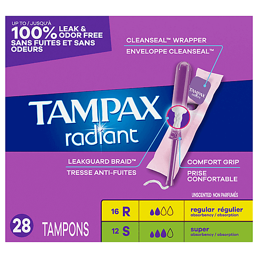 Tampax Regular/Super Absorbency Unscented Tampons 28 ea