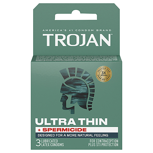 TROJAN™ Ultra Thin Armor™ Spermicidal Lubricant Condoms are thinner than standard TROJAN™ latex condoms – and are designed for a more natural feeling. Trojan Ultra Thin condoms are designed for a more natural feeling and for Ultra Sensitivity. Trojan Ultra Thin condoms have low latex odor. Made from premium quality latex to help reduce the risk of pregnancy and STIs. TROJAN Brand condoms are America's #1 condom, trusted for over 100 years. The TROJAN Brand promotes a safe, healthy, and fun sex life. From condoms to vibrators to lubricants, TROJAN Brand is dedicated to delivering innovative, high-quality products that offer pleasure and protection. Each condom is electronically tested and meets U.S. and International standards for strength. Nonoxynol-9 Spermicide is on this condom for extra protection against pregnancy ONLY -- NOT extra protection against HIV and other STIs