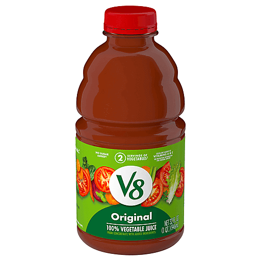 V8 Original 100% Vegetable Juice is a unique and satisfying plant based juice blend that gives your body the replenishment it needs. Made using a blend of tomato and other delicious vegetable juices, this juice drink is an easy and satisfying way to help meet your daily vegetable needs. Gluten free V8 juice contains a flavorful mix of tomato juice and vegetable juices. This V8 juice does not contain MSG, added sugars*, or high fructose corn syrup. This V8 vegetable juice contains two full servings of vegetables per 8 fl oz serving. Also an excellent source of vitamin A and vitamin C, this vegetable juice is an easy way to get the plant-powered boost you need. Enjoy this V8 100% juice as an afternoon snack on a busy day, or drink it post workout to refill your body with nutrients. Experience the delicious taste of V8: The Original Plant-Powered Drink. *Not a low calorie food