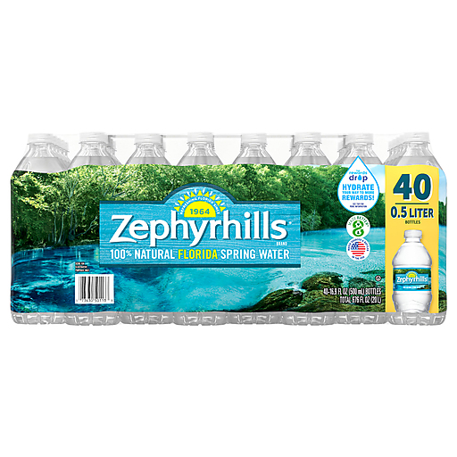 Get back to nature with Zephyrhills Brand Florida Spring Water. Carefully sourced from natural springs located in the great state of Florida, it contains naturally occurring electrolytes for a crisp, clean taste you'll love. And with a better bottle made with 100% recycled plastic* and 100% recyclable, you know that you're not just getting the best that nature has to offer, you're doing your best to help us conserve it too. So grab a pack and get ready for whatever fuels you. Zephyrhills water is available in a variety of sizes, so you can easily stay hydrated no matter where you are. From your gym bag to your hiking pack, at the office, on the go or at home, you can pick up the perfect size for wherever your life takes you. Stock the fridge so your family always has crisp, refreshing hydration on hand. Plus, the more you drink, the more you can earn with The Rewards Drop. Get points with every purchase toward event tickets, merchandise and more – see packaging for details. It's one more reason to enjoy the distinctively fresh taste from the Sunshine State. *20 oz, 700mL, 1L, 1.5L still water bottles only. Excludes label and cap.
